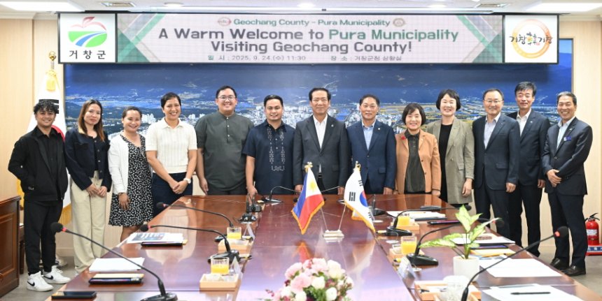 이날 구인모 거창군수와 이재운 거창군의회 의장, 신화범 북부농협 조합장을 비롯한 거창군 관계자들은 거창군청 상황실에서 필리핀 푸라시 대표단의 방문을 환영하고 양 지자체 간의 상생발전 방안을 모색하기 위한 간담회를 가졌다.